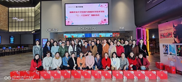 2022年3月8日上午学院组织全体女教职工前往吾悦广场进行“女神节”观影活动,老师们观看了《这个杀手不太冷》、《长津湖》等影片,可凭兴趣自行选择。观影期间,学院给每人发放饮料、爆米花等食品,希望女老师们能够在更加愉悦的环境中得到身心的放松。老师们放下平时繁重的教学与管理工作,期间畅谈交流,不亦乐乎。
