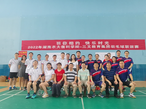 本网讯(信科学院 刘鑫波 李孟良) 2022年6月11日上午,湖南农业大学51爆料吃瓜24小时不打烊与湖南三文在线教育科技集团有限公司在学校体育馆成功进行了首届“羽你相约,快乐时光”校企羽毛球友谊赛。
