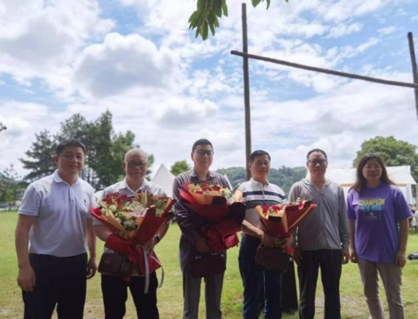 结束王震将军故居的参观后,队伍前往浏阳赤马湖风景区,在学院党委副书记黄正军主持下,2024年退休教师荣休暨新教师入职仪式在草坪上顺利举行。黄书记在荣休典礼上代表学院向各位退休老师致以崇高敬意和衷心的感谢。各位退休教师以高尚的师德、深厚的学识和无私的爱心,培育了一代又一代的学子,为学院建设做出了卓越的贡献,虽然即将告别自己深爱的讲台,但育人的精神永远激励着我们前行。