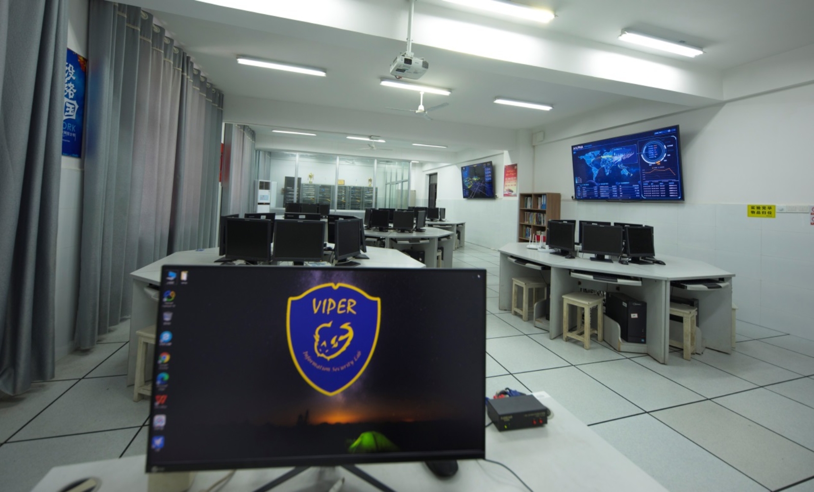实验室依托湖南农业大学信息学科优势,聚焦网络安全技术研究与应用,致力于解决网络空间中的安全威胁问题。实验室现有一间专用机房,共40个机位,配备先进的网络安全实验设备和安恒“明御”网络攻防教学系统,支持大型网络攻防实验与实战训练。实验室还配备了由傅卓军、邓阳君、李伟、刘鑫波、李頔等经验丰富的教师共同组成的指导教师团队。