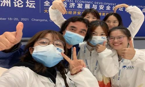 2021年10月14日,颜芬和其他三位彩排组的小伙伴就已经开始工作了,主要负责博鳌论坛开幕式的流程,保证整个过程能够完美进行。颜芬负责饰演芬兰前总理阿霍和本次大会荣誉主席图尔克,并在线上致辞。他们从早上排练到晚上,每次排练都会出现许多问题:摄像机机位不对、灯光效果不够好、线上连线出现网络延迟、线上致辞有杂音、流程节奏不够紧凑等,但是他们配合老师们不停地排练,力求完美,以确保开幕式能够完美进行,让这次博鳌论坛能够彰显长沙魅力,大国风采。10月18日,颜芬作为会议现场组志愿者,脱下了彩排西装,穿上了志愿者制服,开始了为期三天的志愿者生活。由于大会志愿者岗位安排变动较大,楼层志愿者人数不多,所以一天下来保持微笑和最好的礼仪姿态接待宾客就是六七个小时。他们深知志愿者们代表着长沙形象和国家形象,不能出任何差错,所以咬着牙也要坚持下来。