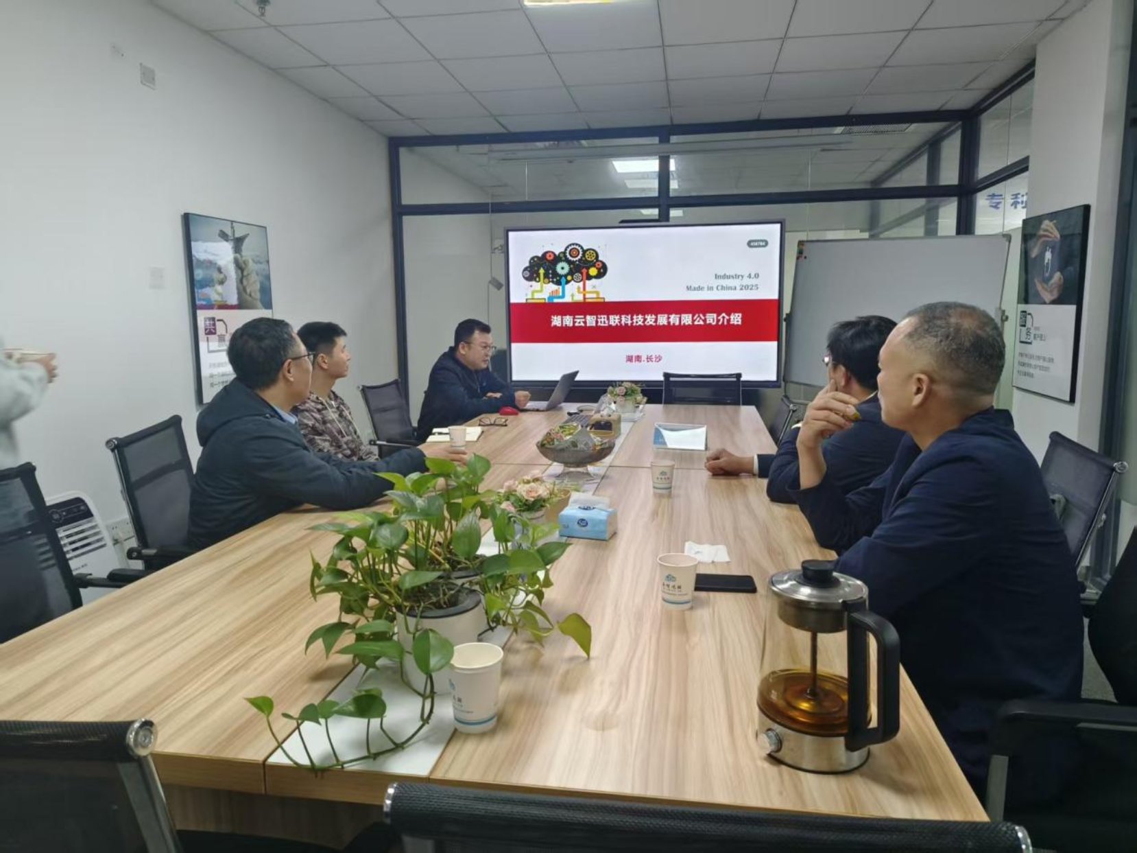 在湖南云智迅联科技发展有限公司,企业负责人详细介绍了公司的发展历程、核心能力与产业布局。云智迅联成立于2018年,是一家扎根长沙、服务湖南及周边地区企业数字化转型的综合服务商,拥有“国家工业互联网解决方案提供商”“省级工业互联网平台企业”等资质。公司秉承“让产业更智慧”的愿景,重点聚焦工业互联网、智能制造与智能终端解决方案的研发与推广。考察期间,学院领导一行参观了公司研发部和运营中心,详细了解了“云之梦”工业互联网平台及在食品、医药、机械等行业的应用成果。